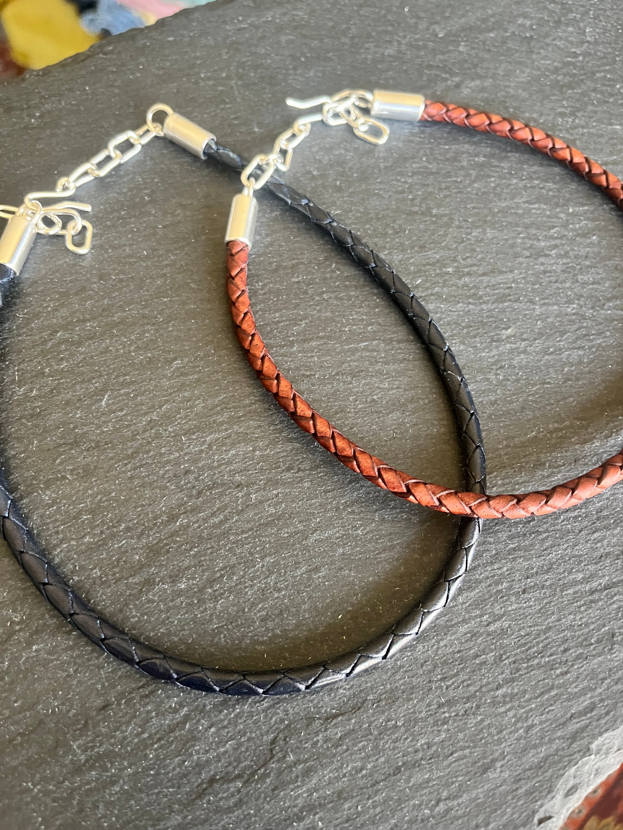 Leather braided Cord. ( black or saddle brown)